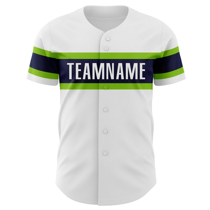 Custom White Neon Green-Navy Authentic Baseball Jersey