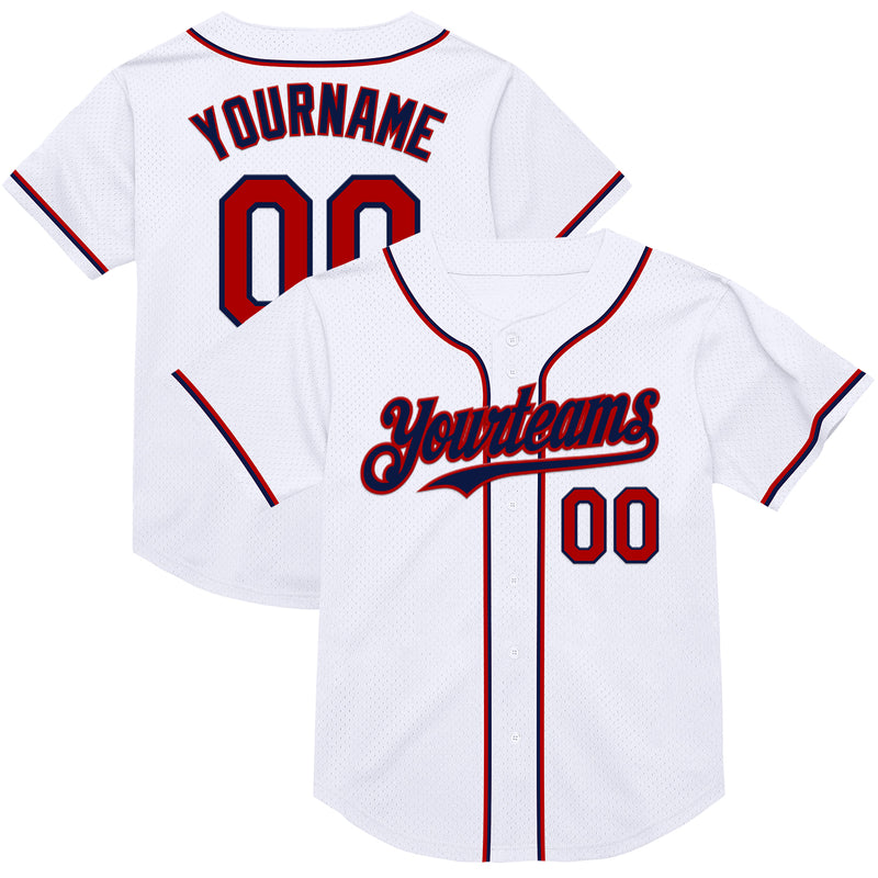 Custom White Red-Navy Mesh Authentic Throwback Baseball Jersey