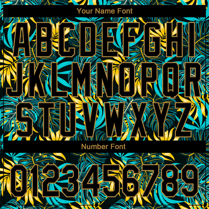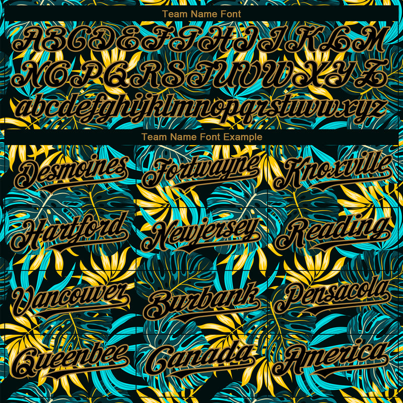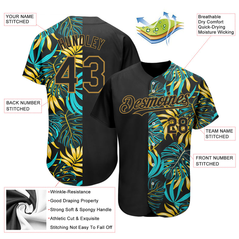 Custom Black Old Gold 3D Pattern Design Hawaii Tropical Palm Leaves Authentic Baseball Jersey