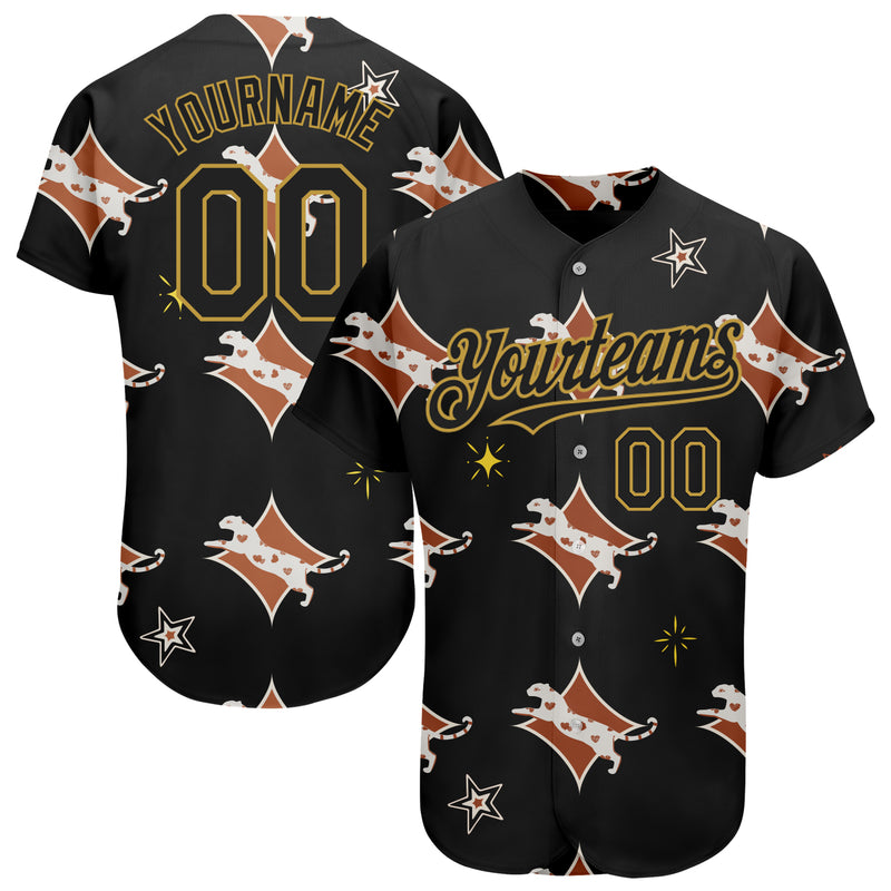 Custom Black Old Gold 3D Pattern Design Leopard Authentic Baseball Jersey