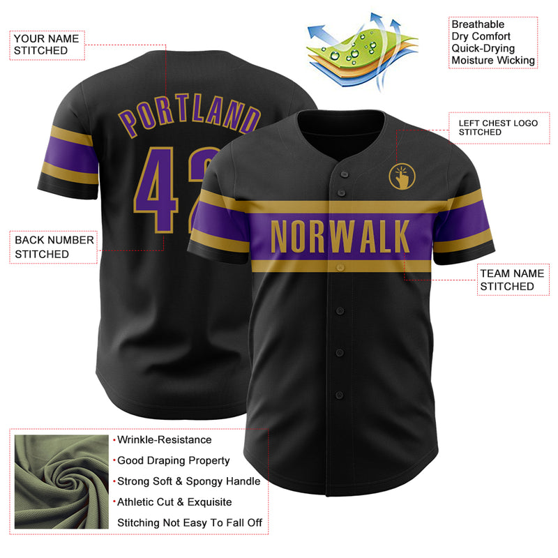 Custom Black Purple-Old Gold Authentic Baseball Jersey