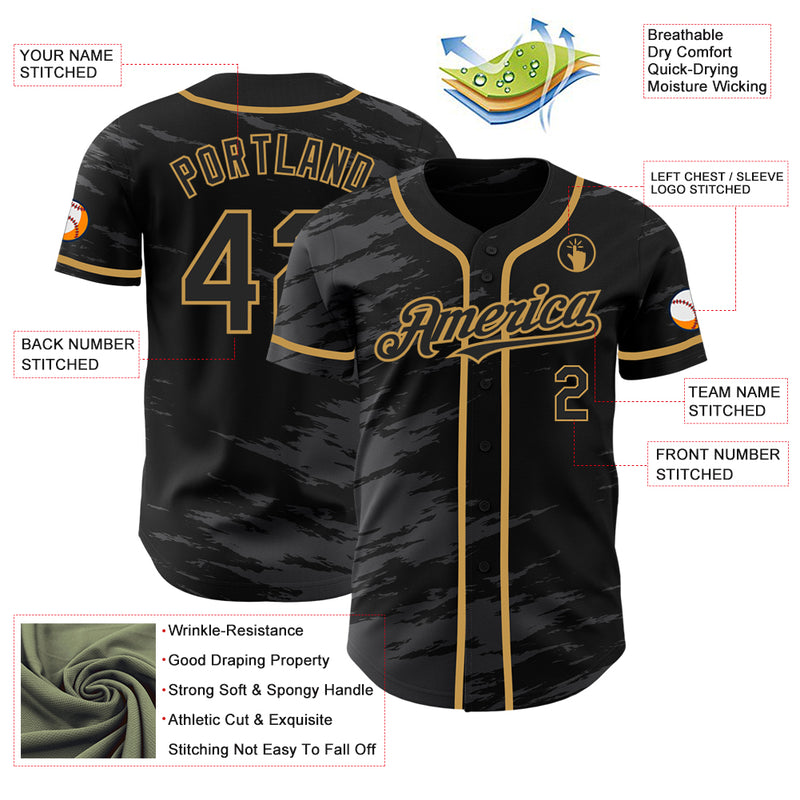 Custom Black Steel Gray Splash Ink Old Gold Authentic Baseball Jersey
