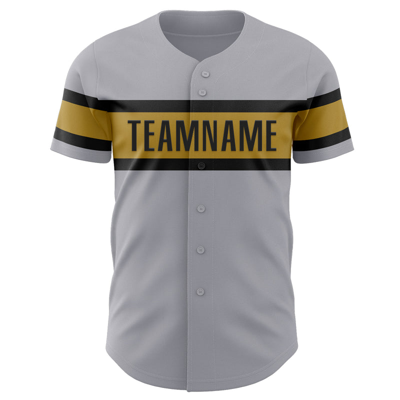 Custom Gray Black-Old Gold Authentic Baseball Jersey