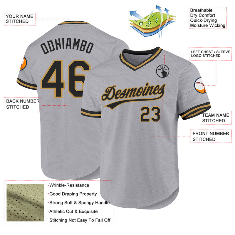 Custom Gray Black-Old Gold Authentic Throwback Baseball Jersey