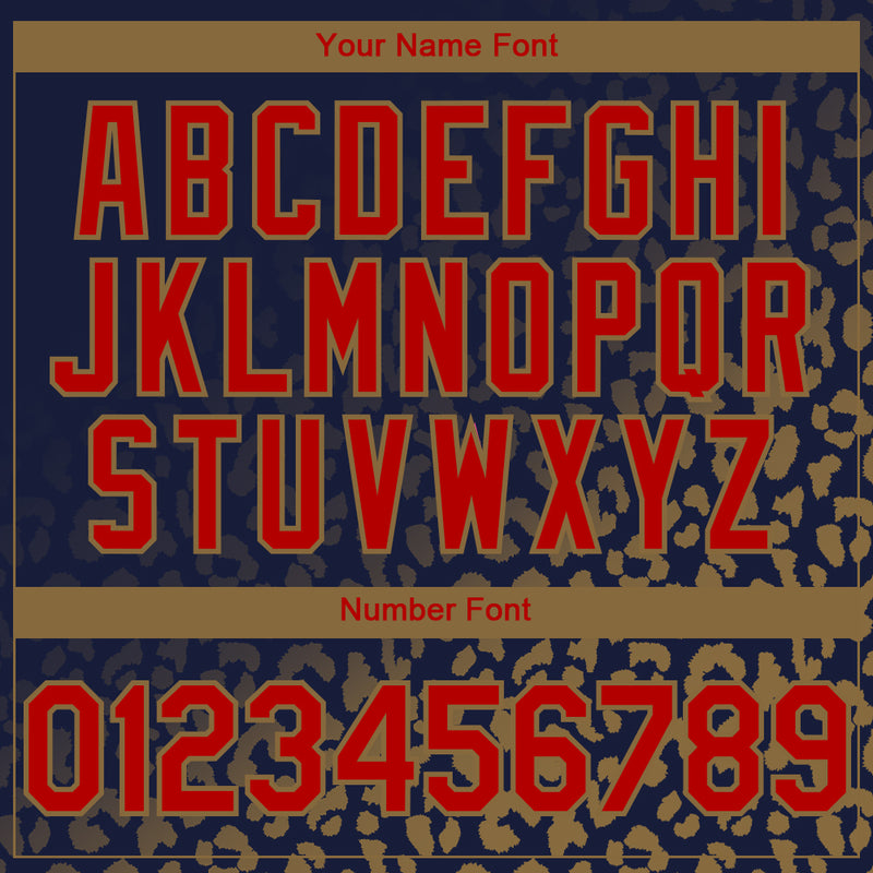 Custom Navy Red-Old Gold 3D Pattern Design Leopard Print Fade Fashion Authentic Baseball Jersey