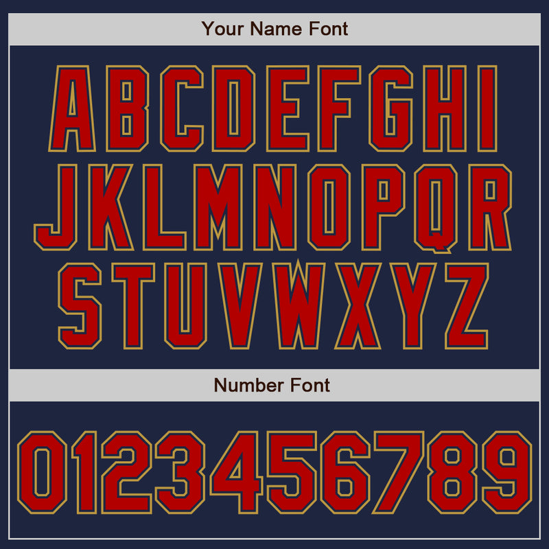 Custom Navy Red-Old Gold Authentic Raglan Sleeves Baseball Jersey