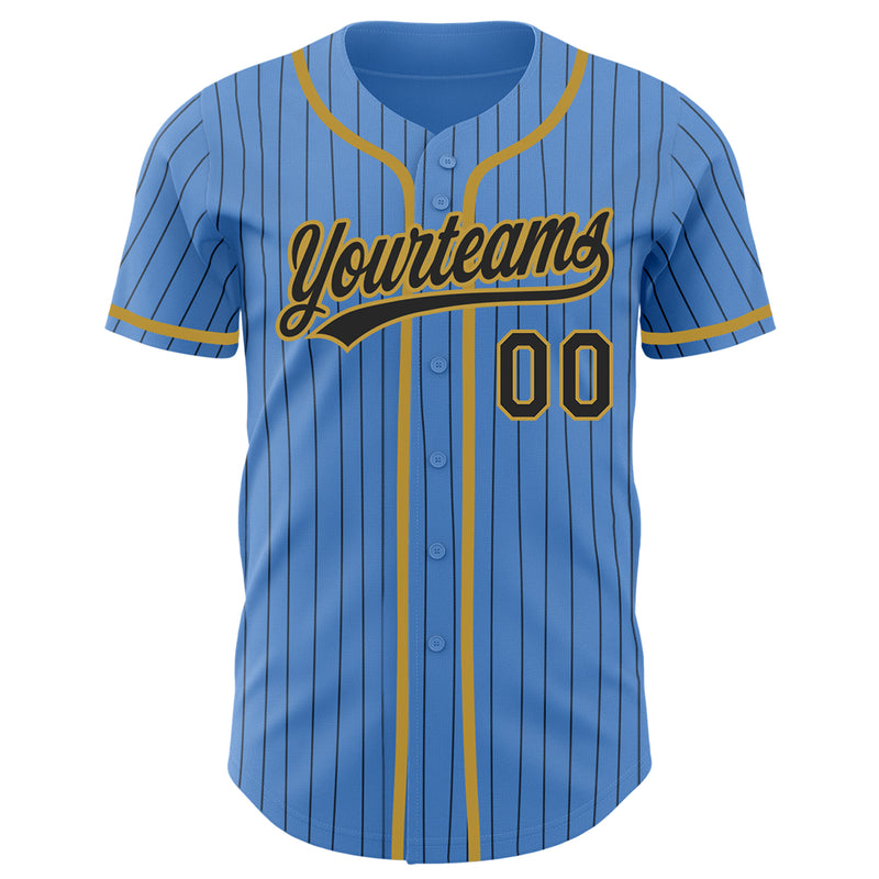 Custom Powder Blue Black Pinstripe Old Gold Authentic Baseball Jersey