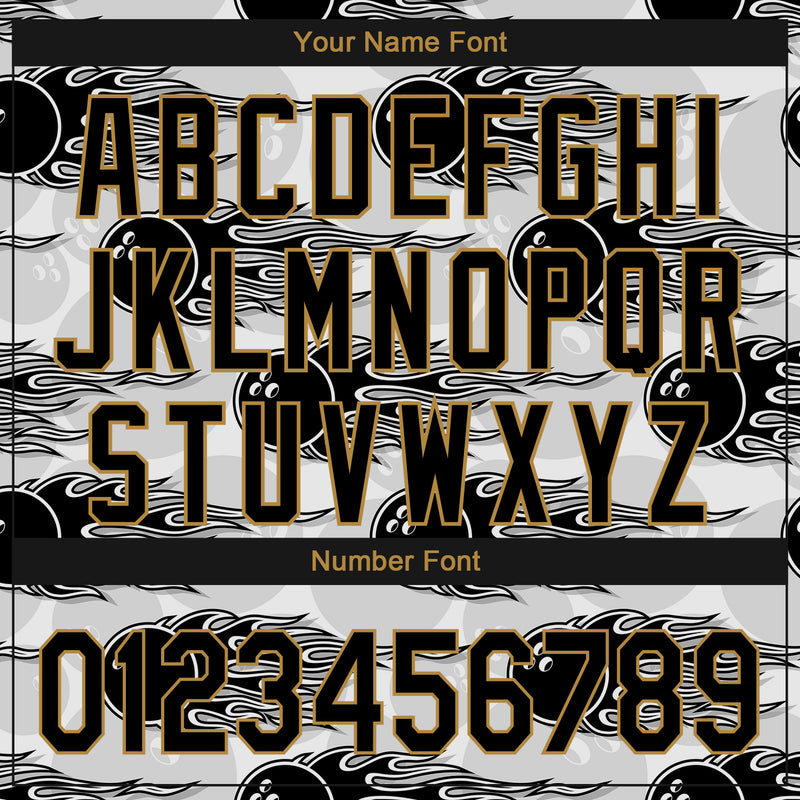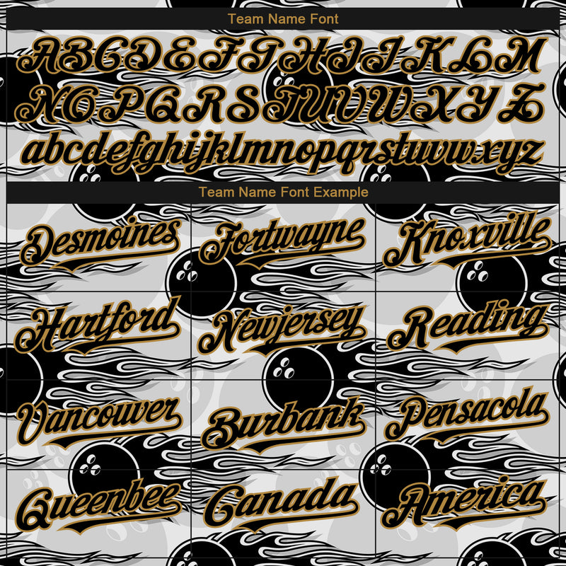 Custom White Black-Old Gold 3D Pattern Design Bowling Ball With Hotrod Flame Authentic Baseball Jersey
