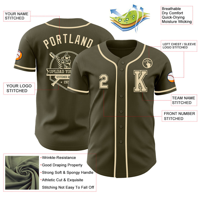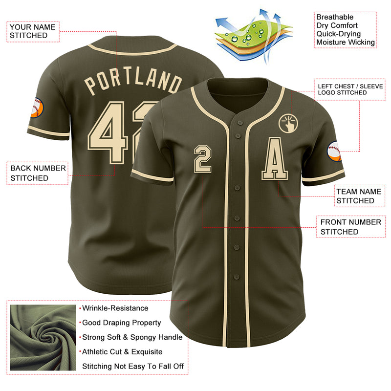 Custom Olive Cream Authentic Salute To Service Baseball Jersey