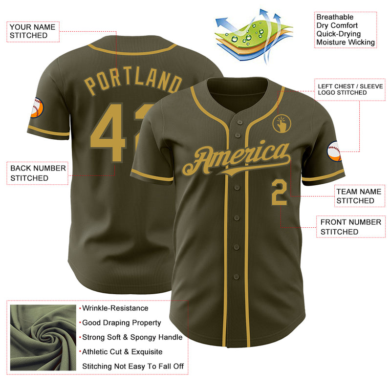 Custom Olive Old Gold Authentic Salute To Service Baseball Jersey