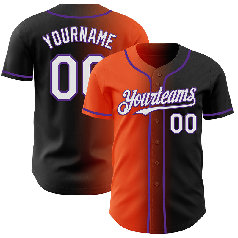 Custom Black White Orange-Purple Authentic Gradient Fashion Baseball Jersey