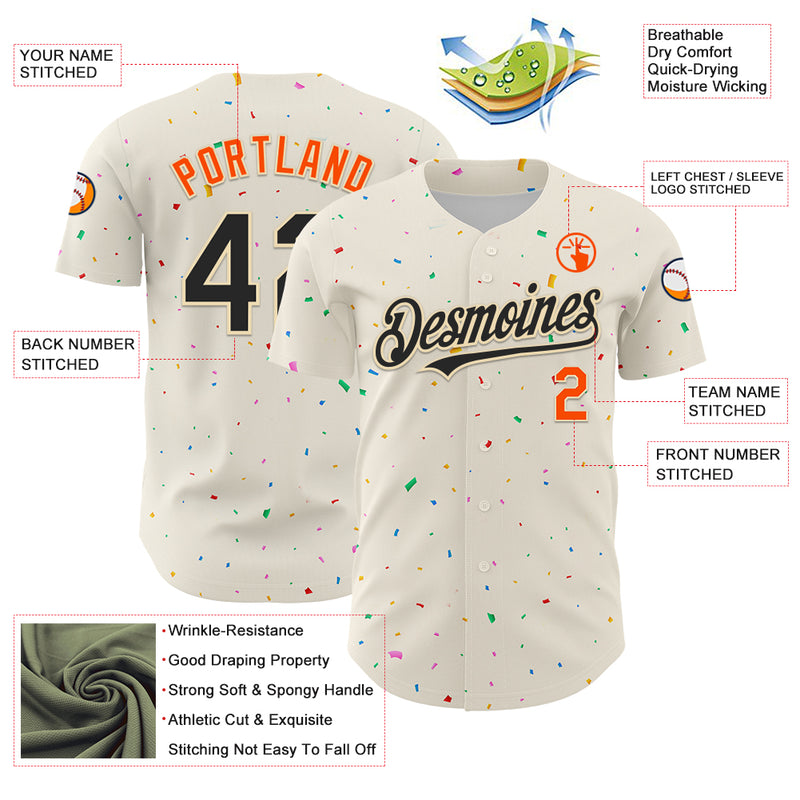 Custom Cream Black-Orange 3D Pattern Design Confetti Authentic Baseball Jersey