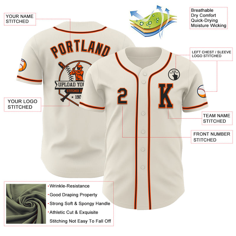 Custom Cream Black-Orange Authentic Baseball Jersey