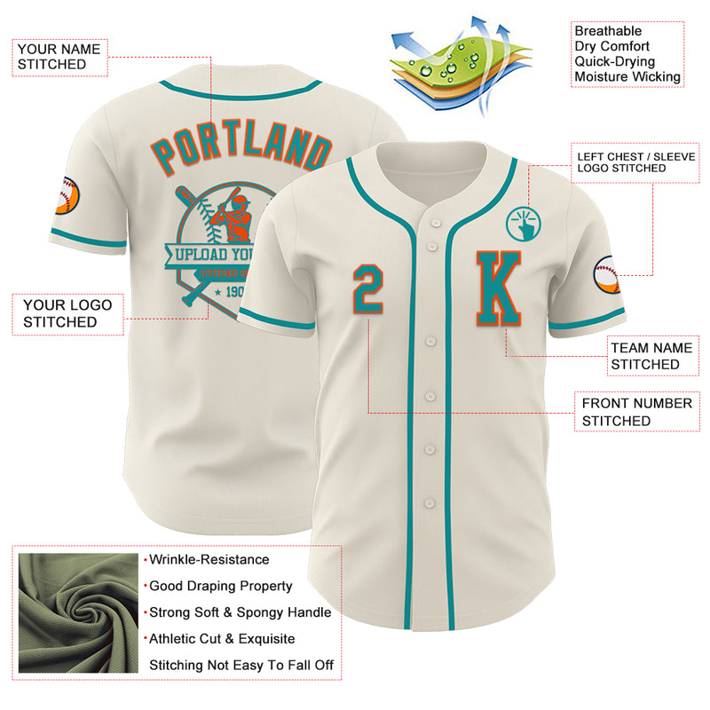 Custom Cream Teal-Orange Authentic Baseball Jersey