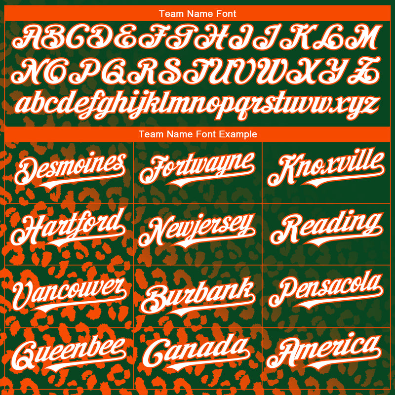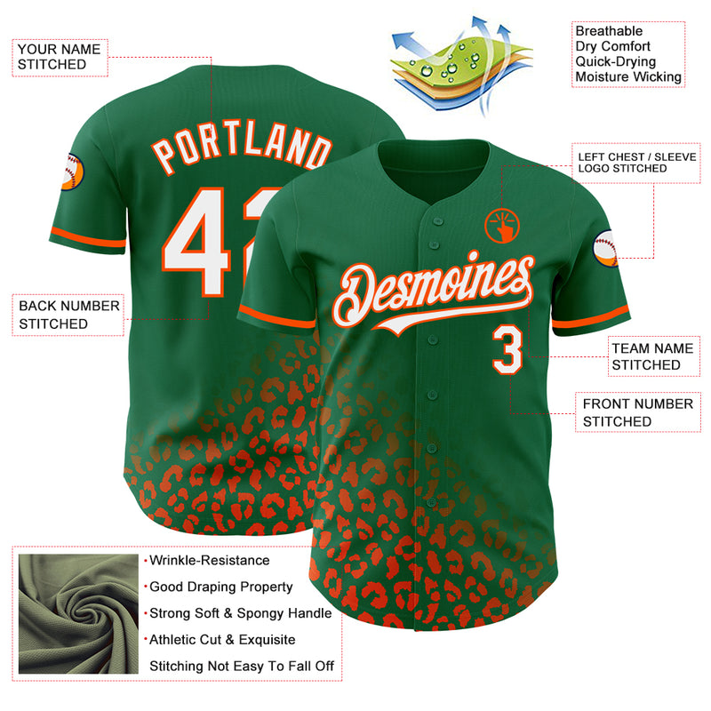 Custom Kelly Green White-Orange 3D Pattern Design Leopard Print Fade Fashion Authentic Baseball Jersey