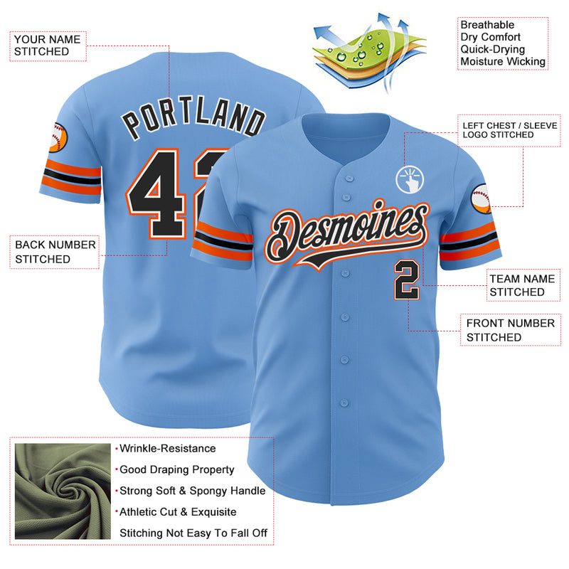 Custom Light Blue Black-Orange Authentic Baseball Jersey