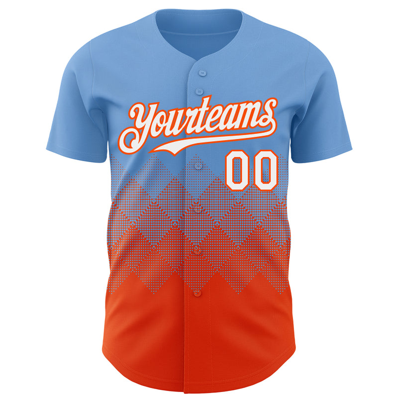 Custom Light Blue White-Orange 3D Gradient Square Shape Authentic Baseball Jersey