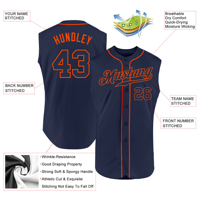 Custom Navy Navy-Orange Authentic Sleeveless Baseball Jersey