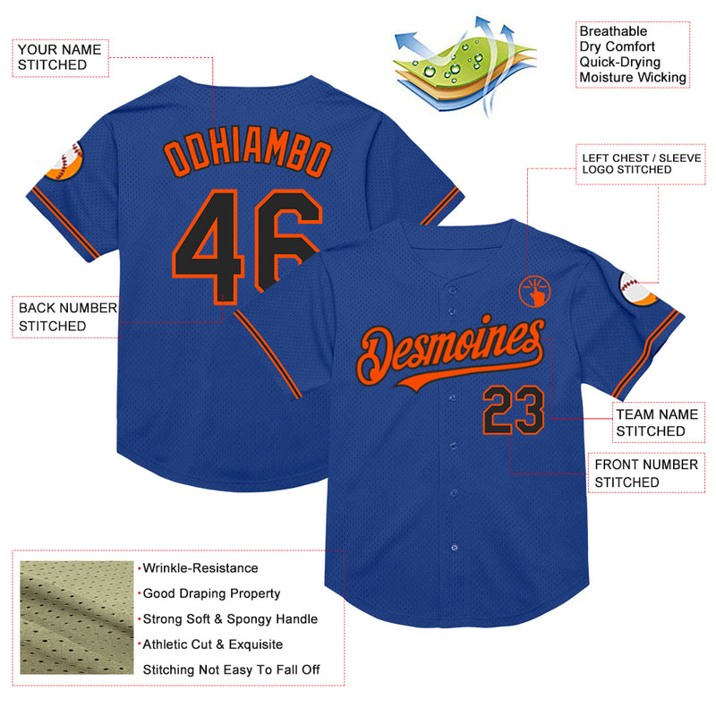 Custom Royal Black-Orange Mesh Authentic Throwback Baseball Jersey
