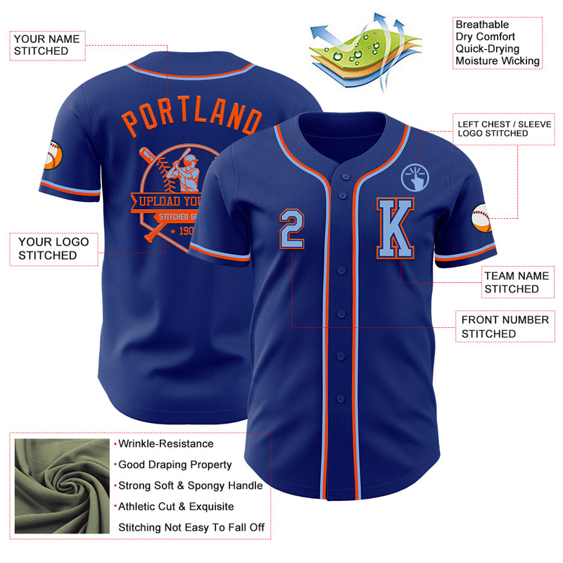 Custom Royal Light Blue-Orange Authentic Baseball Jersey