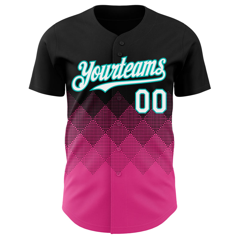 Custom Black White Pink-Aqua 3D Gradient Square Shape Authentic Baseball Jersey