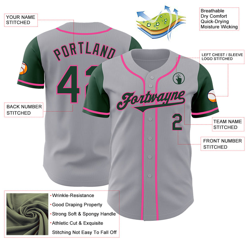 Custom Gray Green-Pink Authentic Two Tone Baseball Jersey