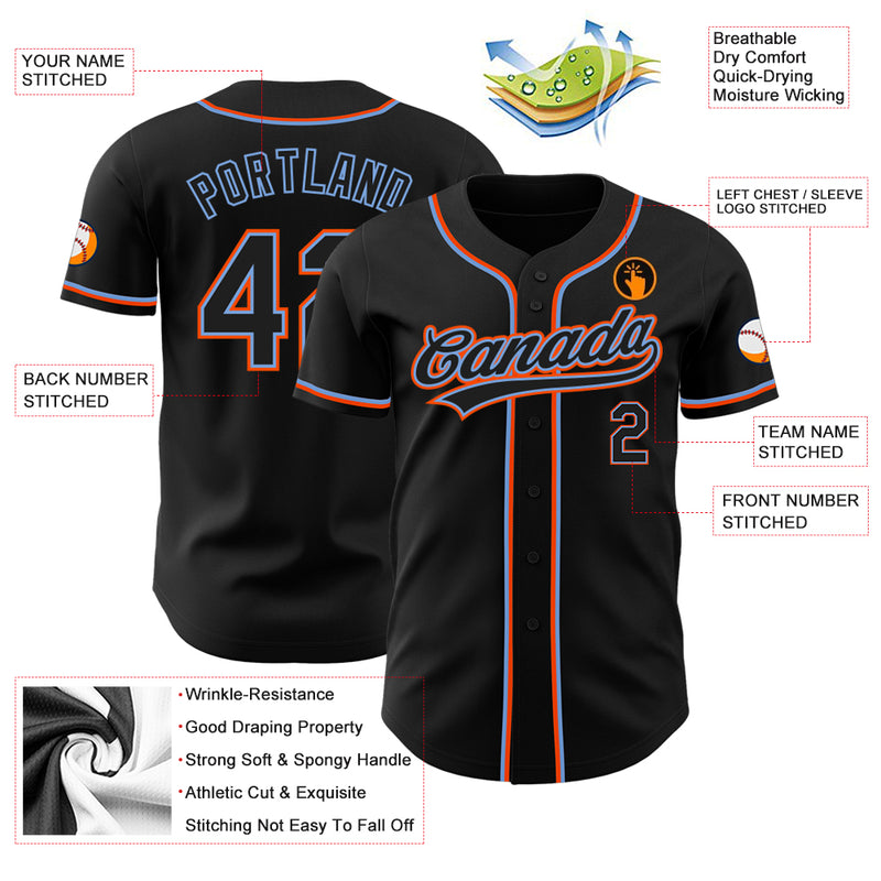 Custom Black Black Powder Blue-Orange Authentic Baseball Jersey