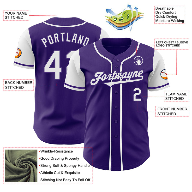 Custom Purple White Authentic Two Tone Baseball Jersey