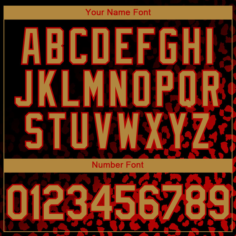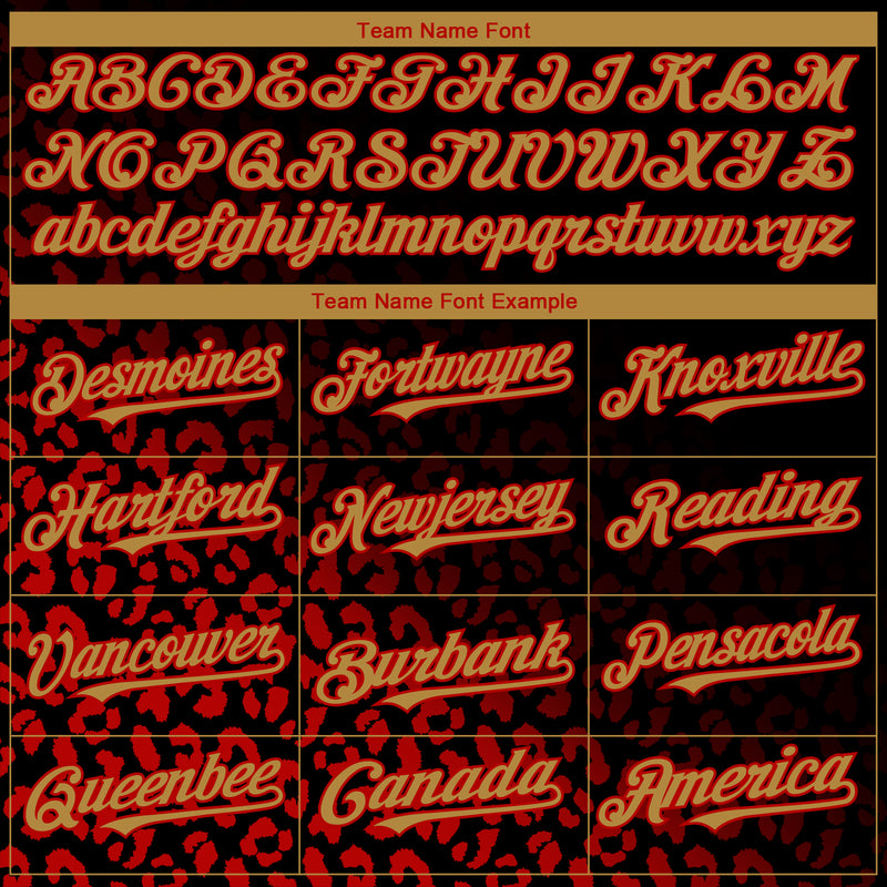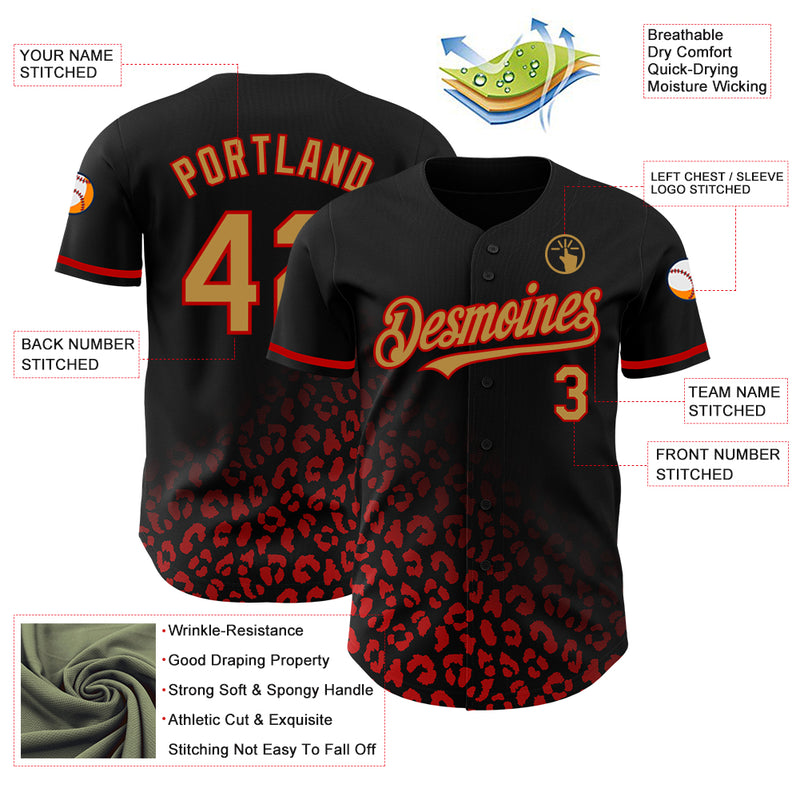 Custom Black Old Gold-Red 3D Pattern Design Leopard Print Fade Fashion Authentic Baseball Jersey