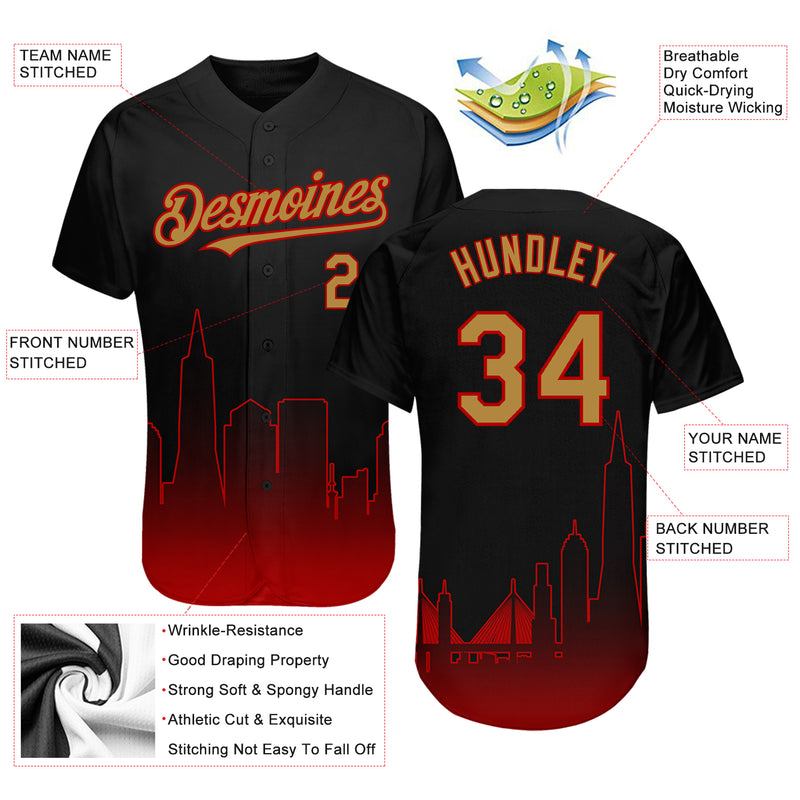 Custom Black Old Gold-Red 3D San Francisco City Edition Fade Fashion Authentic Baseball Jersey