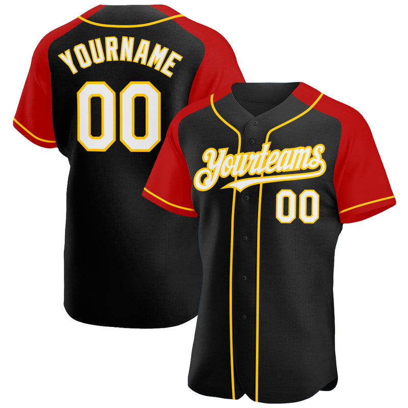 Custom Black White Red-Yellow Authentic Raglan Sleeves Baseball Jersey