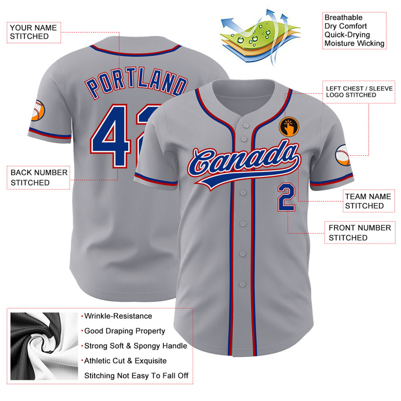 Custom Gray Royal-Red Authentic Baseball Jersey