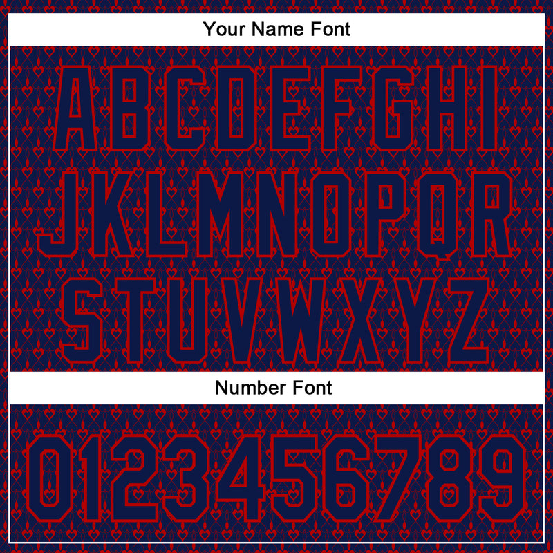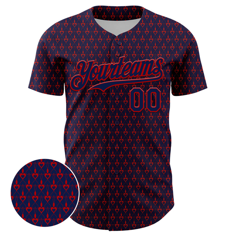 Custom Navy Red 3D Pattern Design Hearts Authentic Baseball Jersey