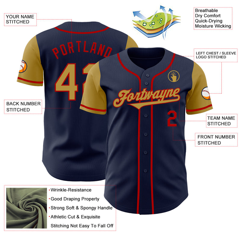 Custom Navy Old Gold-Red Authentic Two Tone Baseball Jersey