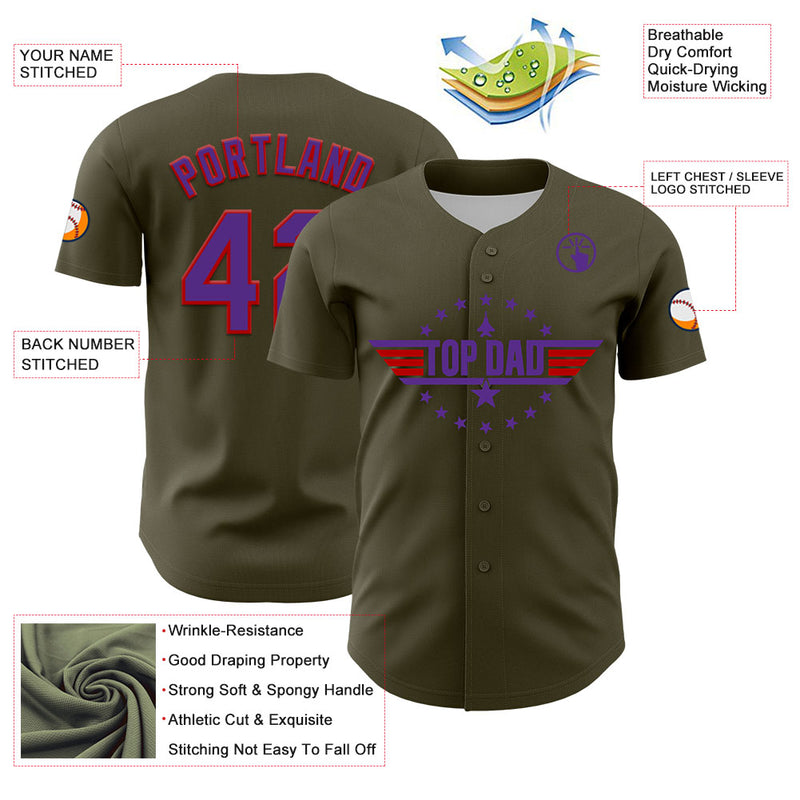 Custom Olive Purple-Red 3D Pattern Design Father's Day Top Dad Authentic Salute To Service Baseball Jersey