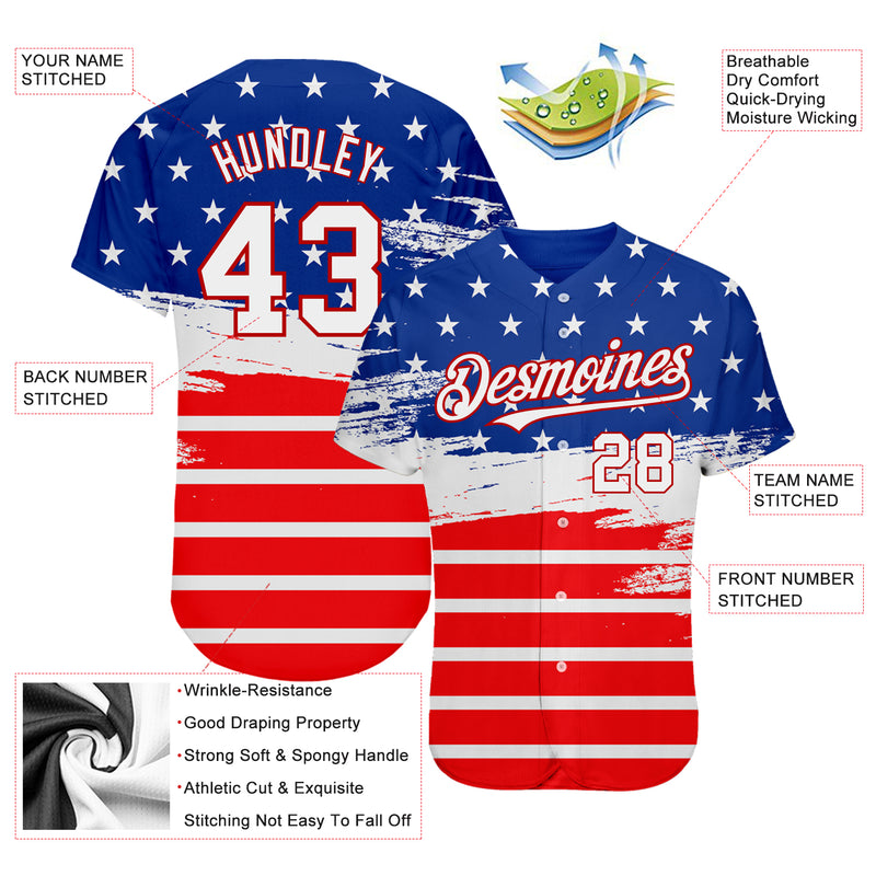 Custom Royal White-Red 3D American Flag Fashion Authentic Baseball Jersey