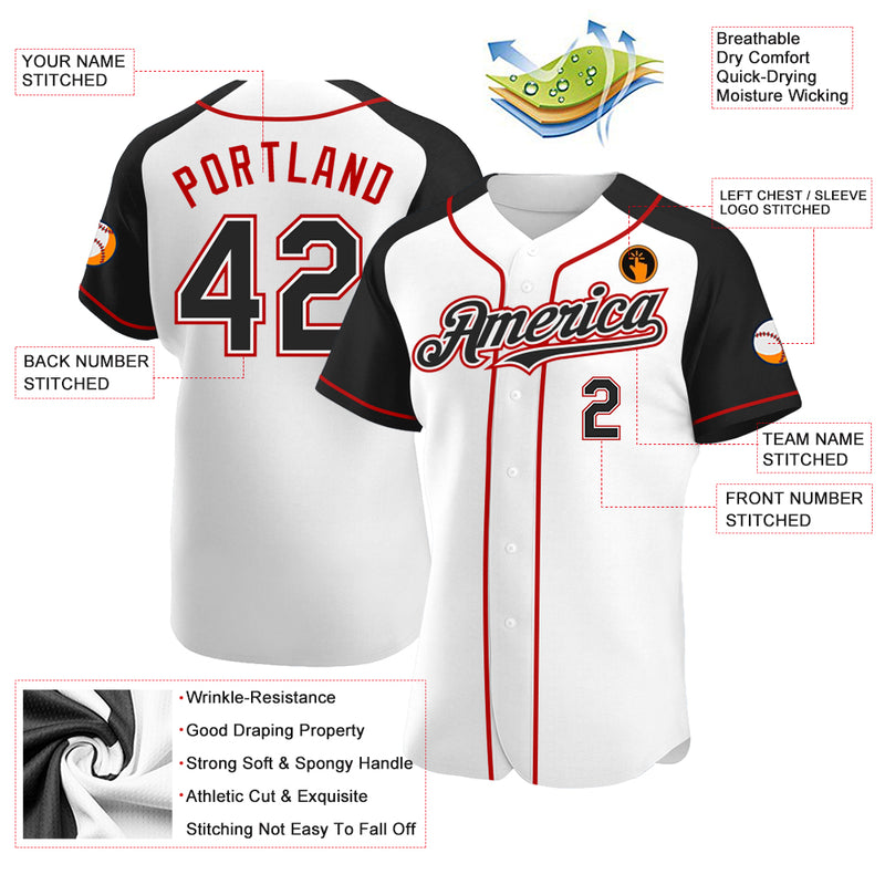 Custom White Black-Red Authentic Raglan Sleeves Baseball Jersey