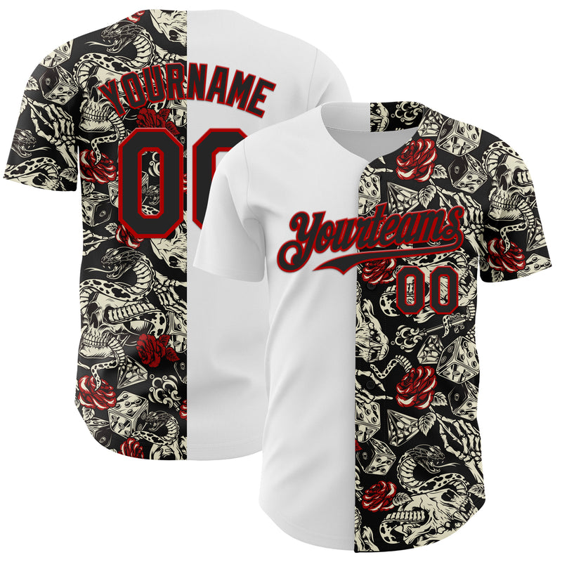 Custom White Black-Red 3D Pattern Design Vintage Tattoos Authentic Baseball Jersey