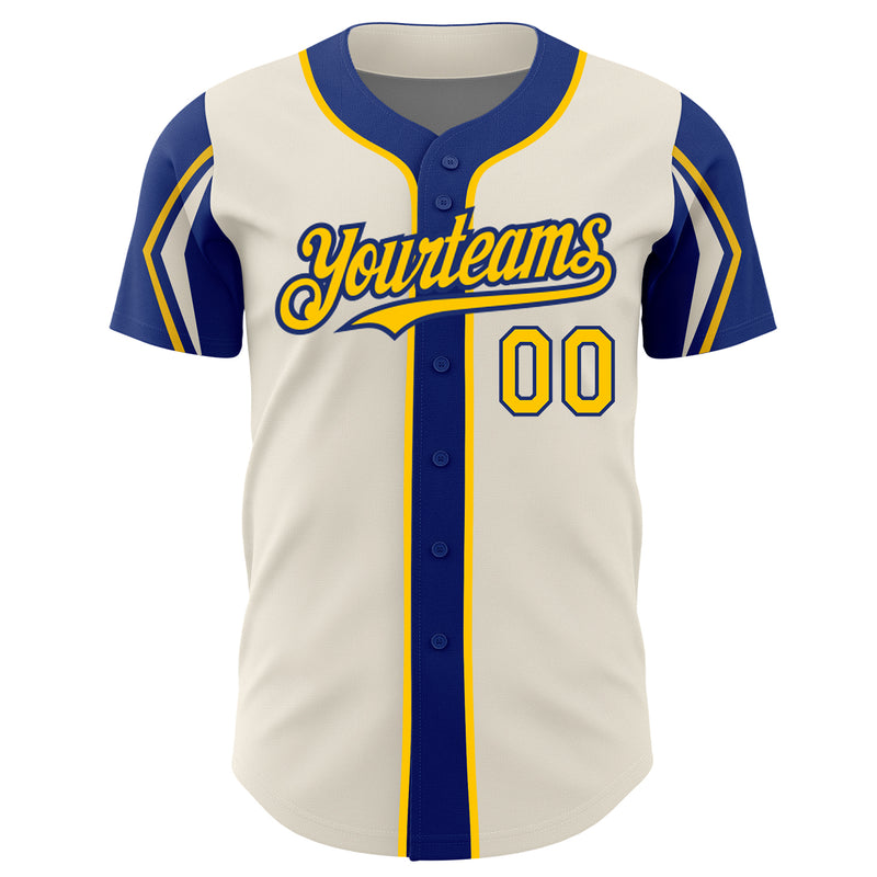Custom Cream Yellow-Royal 3 Colors Arm Shapes Authentic Baseball Jersey