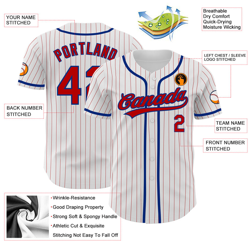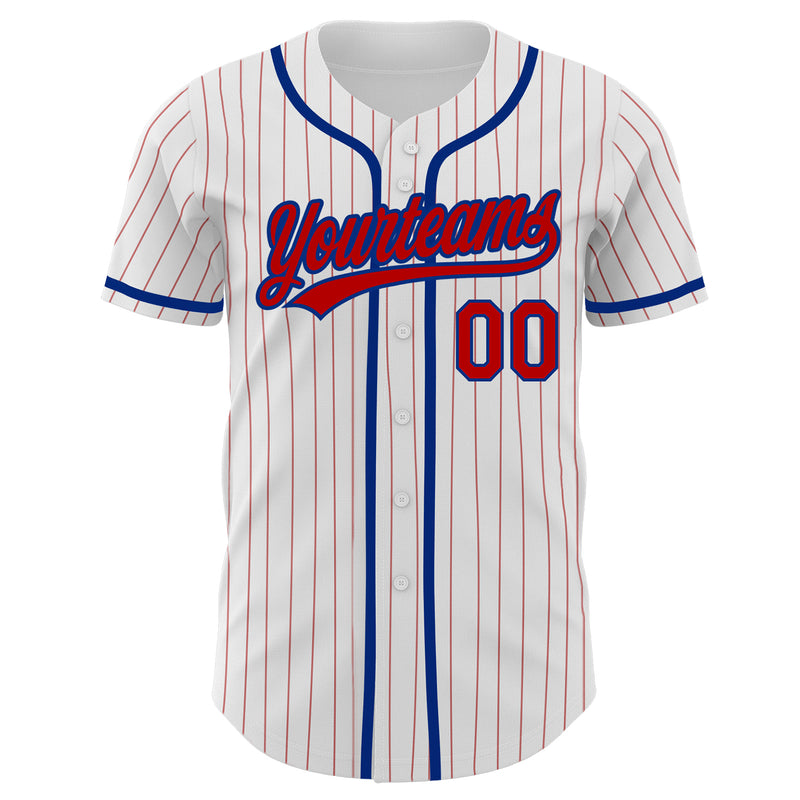 Custom White Red Pinstripe Red-Royal Authentic Baseball Jersey