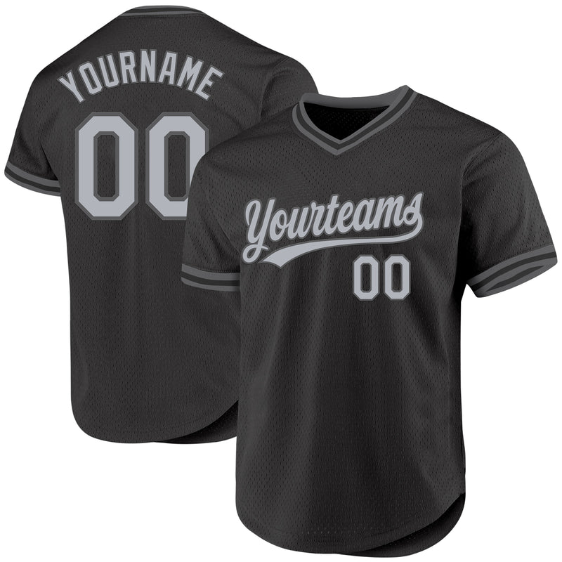 Custom Black Gray-Steel Gray Authentic Throwback Baseball Jersey