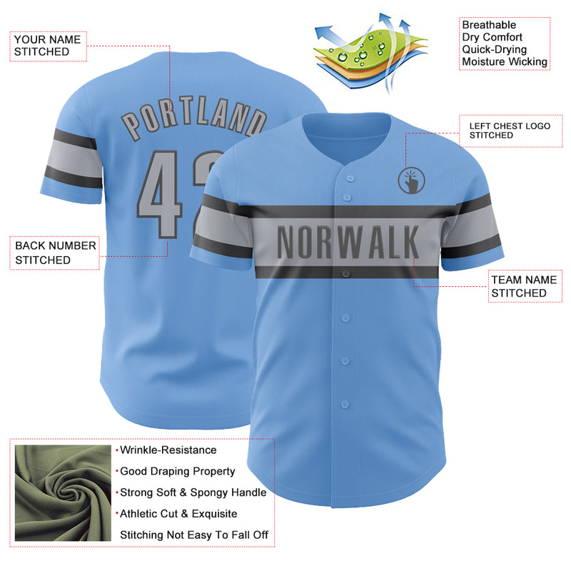 Custom Light Blue Gray-Steel Gray Authentic Baseball Jersey
