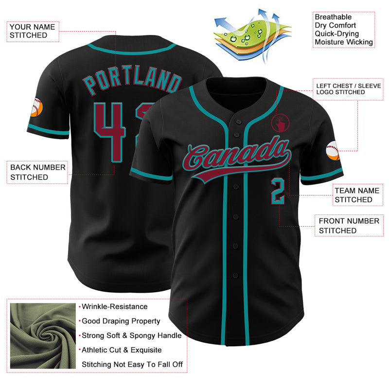 Custom Black Crimson-Teal Authentic Baseball Jersey