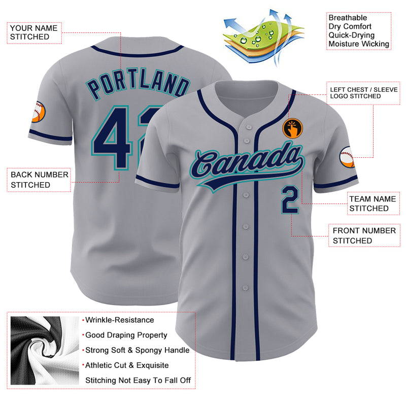 Custom Gray Navy-Teal Authentic Baseball Jersey