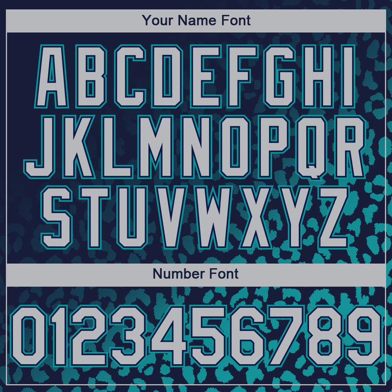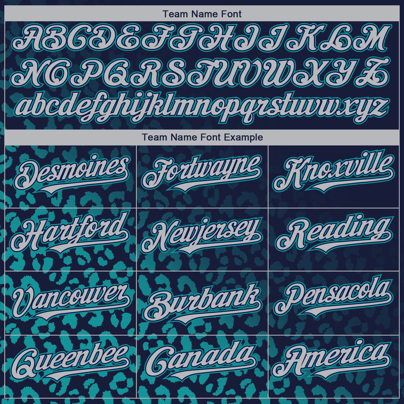 Custom Navy Gray-Teal 3D Pattern Design Leopard Print Fade Fashion Authentic Baseball Jersey