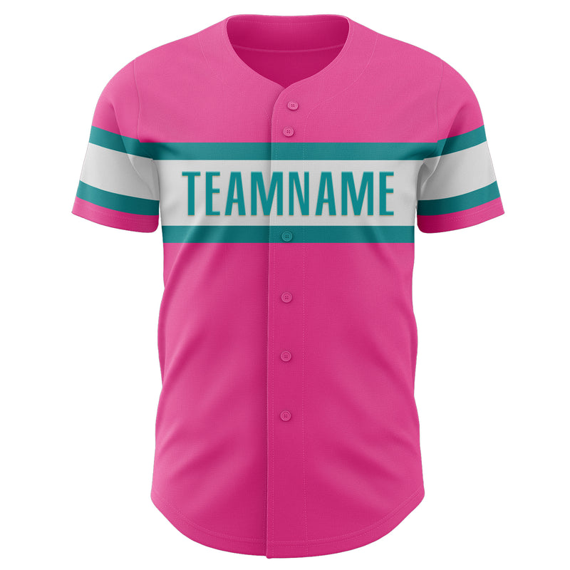 Custom Pink White-Teal Authentic Baseball Jersey