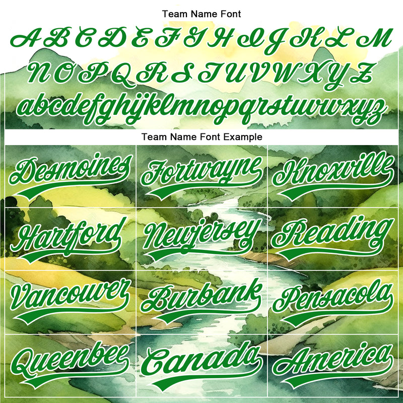 Custom White Grass Green 3D Pattern Design Mountains Landscape Authentic Baseball Jersey