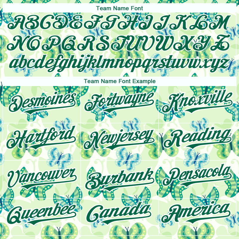 Custom White Kelly Green 3D Pattern Design Animal Butterfly Authentic Baseball Jersey