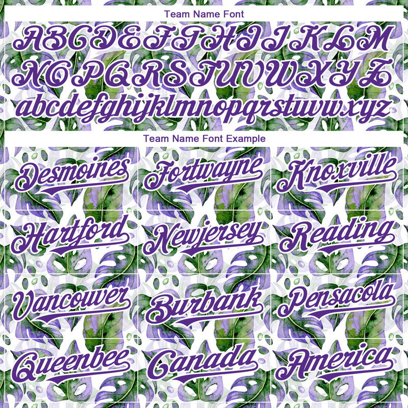 Custom White Purple 3D Pattern Design Tropical Monstera Authentic Baseball Jersey