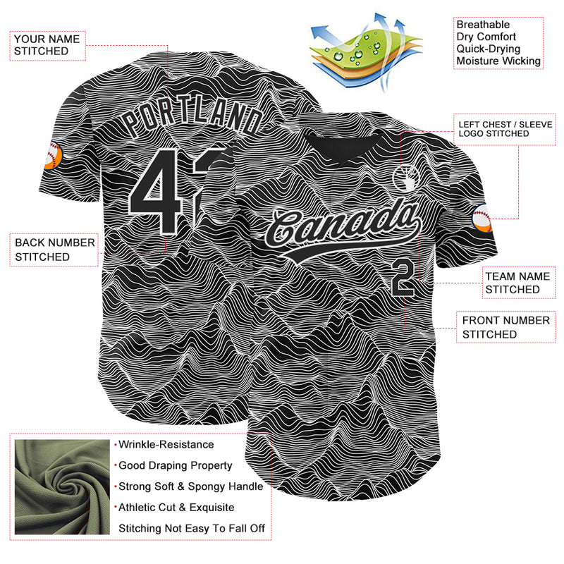 Custom Black White 3D Pattern Design Abstract Mountains Authentic Baseball Jersey